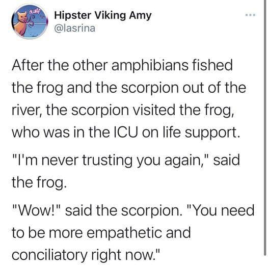 >> unacceptable. It’s not useful to exercise any empathy for them. They